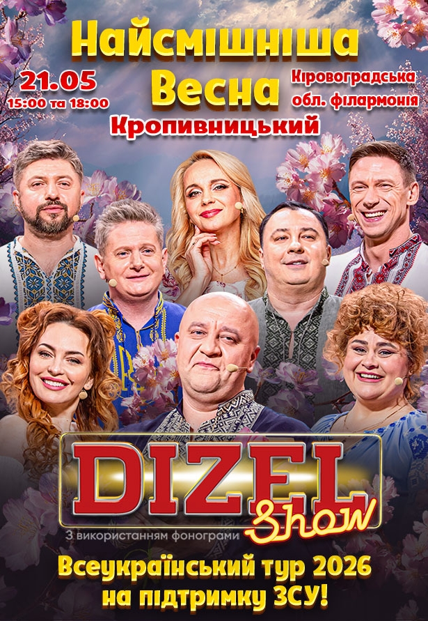 В рамках Всеукраїнського весняного туру! Весна — час, коли хочеться усміхатися, жити на повну й ділитися гарним настроєм! Саме тому «Дизель Шоу» вирушає у новий великий Всеукраїнський весняний тур-2026. Ми їдемо дарувати вам сміх, тепло та незабутні емоції кожному українському глядачеві!